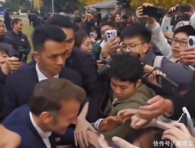 法国总统访华期间在川大可谓是人生高光时刻,被大学生的热情包围着,堪比大型演唱会现场,值得一提的是总统先生在欢迎人群的队伍中发现了一个小姑娘,还停下了往前走的脚步。 由于小姑娘年龄小长得也小,挤在人群中被淹没了,几乎让人看不到她的存在,好在总统先生是一个细心的人,发现这个小姑娘后用西方亲吻礼亲了小姑娘的额头,这一幕成为他访川大时的亮点之一。 总统先生在热闹的人群中,用双手捧着小姑娘的脸蛋,让人没想到的是小姑娘长得眉目清秀,说不上多么漂亮,但五官匀称又精致。